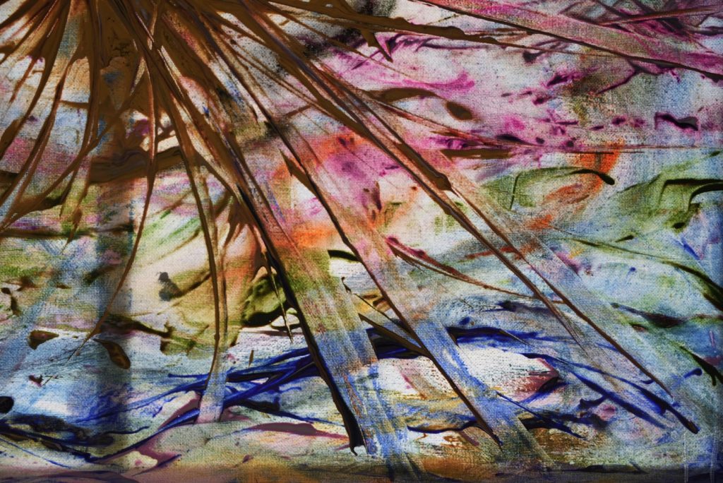 Materialien: Acrylfarben, Schilfgras, Curry, Kurkuma auf Leinwand